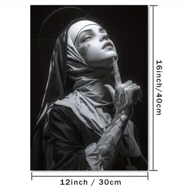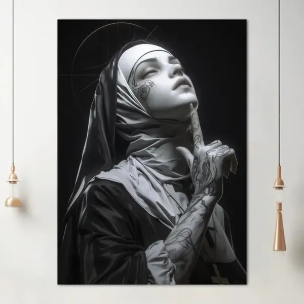 Стильная картина для тату-студии на холсте – монахиня с татуировкой. Идеальный вариант для подарка тату-мастеру.