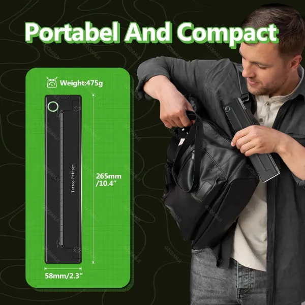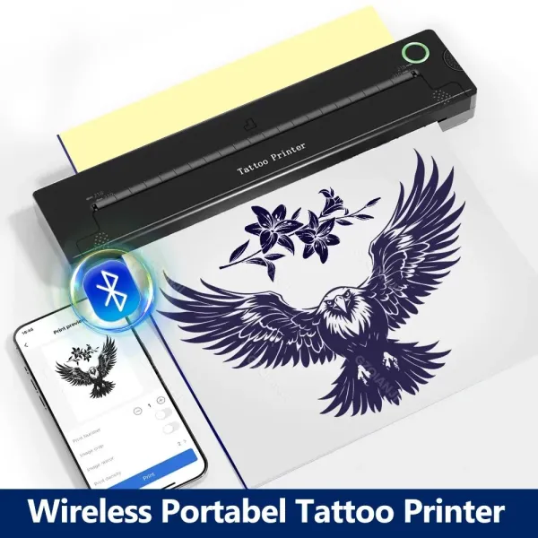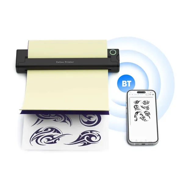 Це сучасний бездротовий тату-принтер, створений для майстрів, які цінують мобільність, точність і надійність. Він дозволяє швидко та якісно створювати трафарети без використання чорнил і проводів. З ним ви можете друкувати ескізи з телефону або планшета прямо на трансферний папір для подальшого перенесення зображення на шкіру.